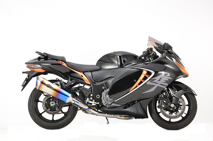 「超軽量」チタンフルエキゾーストシステム マシンベンド チタンフルエキゾーストを採用し、大幅な軽量化 「約マイナス13㎏」を実現。 低回転域から、全回転域のパワー&トルクアップを達成。 特に低中回転域では、ビッグトルク&フラットなエンジン特性により、 抜群のコントロール性を可能にしました。 超軽量で、乗り手に忠実なビッグトルクのエンジン特性により、 コントロールしやすく刺激的な加速性能を体感出来ます。 新型《Hayabusa》登場に合わせて、ニューデザインの2ポートエンドの サイレンサーを採用し、高級感あふれるデザインと、図太い重低音 サウンドを実現した「政府認証、車検対応」マフラーが、完成しました。お届けについて